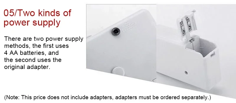 Power supply method: power adapter USB cable or 4 AA batteries (not included)