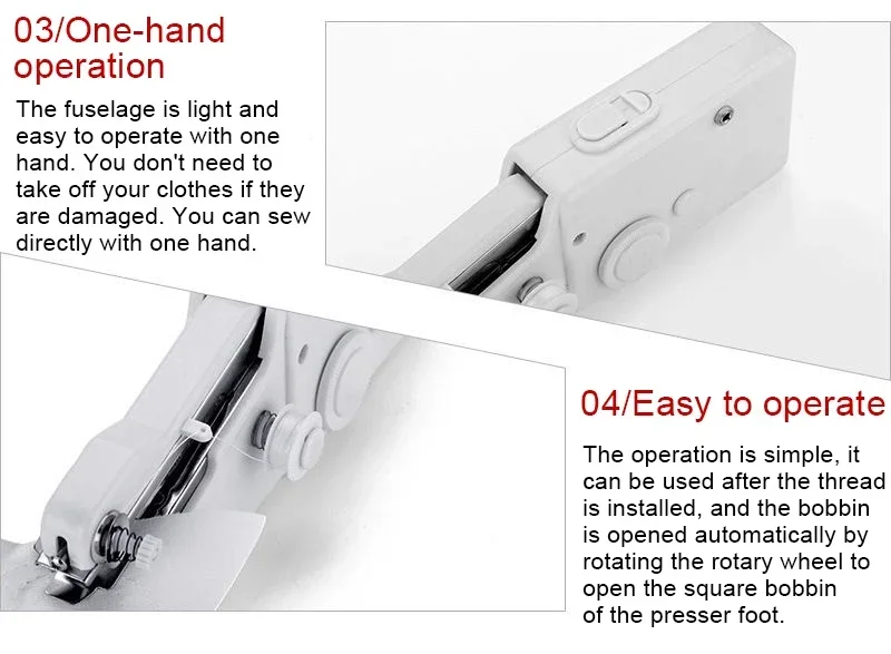 2. This is a single thread sewing machine, so you need to tie the knot yourself.